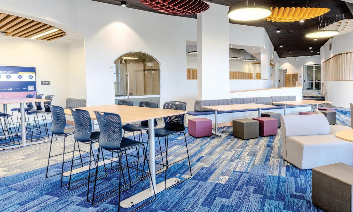 The flexible layout includes a blend of quiet study zones, collaborative breakout areas, and formal learning spaces. The addition of seminar rooms, presentation pods, and open-plan workspaces allows students to move fluidly between independent research and group discussion, mirroring the environments they will encounter in tertiary study and the workplace.