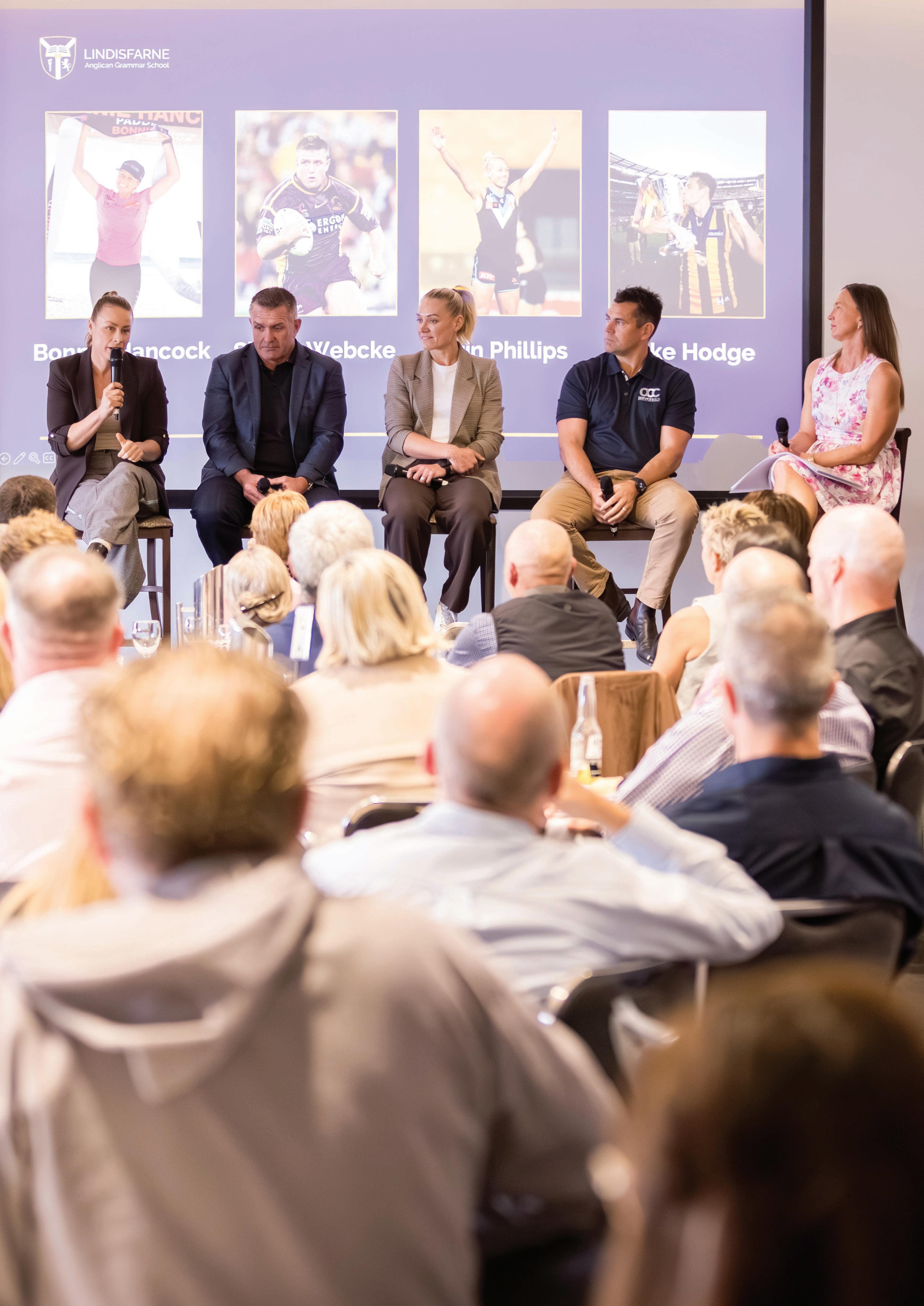 Students and community members at a Lindisfarne Sports Lunch; strengthening partnerships, celebrating achievement, and building connections between education, sport, and the wider community.