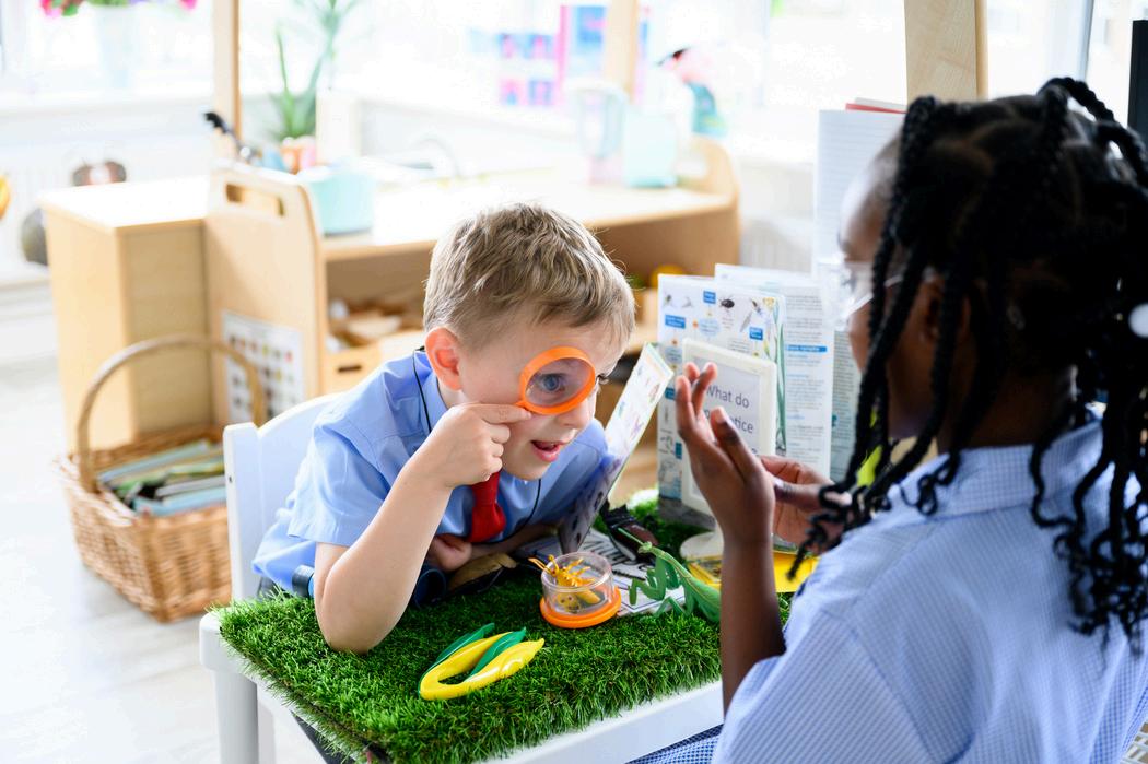 In the prep school’s woodland cafe, skylights depict planes on their flightpath above Children tell us they love the mushroom wellington and spaghetti bolognese There’s debate about the quality of the shepherd’s pie, but ‘the chips are amazing!’ When someone mentions ‘the cookie with jam’, they all chorus, ‘That’s the good stuff!’ After lunch, the ‘world of adventures’ playground (with cool zipline) is favoured by years 4 to 6 Once a week, ‘playground pals’ from years 5 and 6 play with the littlest children