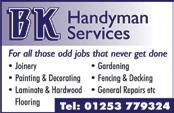 17 ADVERTISE CALL: 01253 204592 or sales@link-mag.co.uk L CAL ANY SIZE UPVC WINDOW Doors from £645 fitted Fully Guaranteed Top Quality Window (One Opening Up to 6x4 size) £595 Rossall WindoW Co ltd A local Family Business 25 Rossall Road, Cleveleys Tel: 865524 Office/Showroom REG 19162 EST.1985 (Inc VAT) • Fascias • Cladding • Guttering • Porches • Conservatories • Fascias • Cladding • Guttering • Porches • Conservatories 07814 025973 Paul Torkington Paving Services Ltd • Turfing & Fencing • Block Paving • Indian Paving • Walling • Ponds • Rockeries • Drainage • Artificial Grass 01253 824273 Telephone for a free quote on: 22 Queens Walk Cleveleys Lancs FY5 1JW Marshall’s Registered Driveways, Paving & Landscape Specialist Est.1988