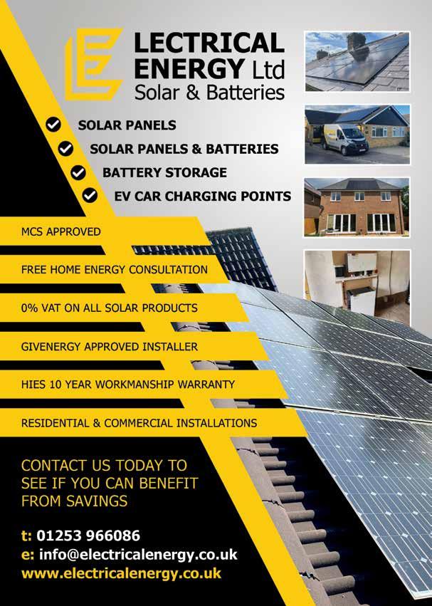5 ADVERTISE CALL: 01253 204592 or sales@link-mag.co.uk L CAL Improve, Don’t Move! Maximise the value of your home. SPACE-SAVING – MAXIMISE YOUR GARAGE HEADROOM SECURITY-ENABLED AUTO-LOCKING SYSTEM CHOICE OF 21 COLOURS TO MATCH YOUR HOME REMOVAL AND RECYCLING OF YOUR OLD DOOR DEDICATED AFTER-CARE TEAM PREMIUM 3.4M ANTHRACITE £1,990 GAROLLA PREMIUM Increased Security •Double Insulation One-Touch Close £895 COMPACT • UP TO 2.4M 01253 490 039 www.garolla.co.uk 9.8 out of 10 4.8 out of 5 BESPOKE ELECTRIC DOORS MANUFACTURED IN THE UK FREE FITTING PAYMENT ON INSTALLATION 01253 843033 Household and utilities bills are rocketing, so now is the time to consider insulation as the answer to inflation! According to the Energy Saving Trust in an uninsulated home up to 25% of heat is lost through the roof space! We can supply and install insulation to save your pocket and the planet – and you’ll be surprised how cost-effective our solutions are. • No waiting around. We arrive on time, every time • Lifetime guarantee • Reliable, local company working in your home • Extra confidence because we are accredited by Which? Trusted Traders • Absolutely no mess and no fuss. We are specialists in loft boarding and insulation – we also supply and install loft ladders and hatches www.access4lofts.co.uk