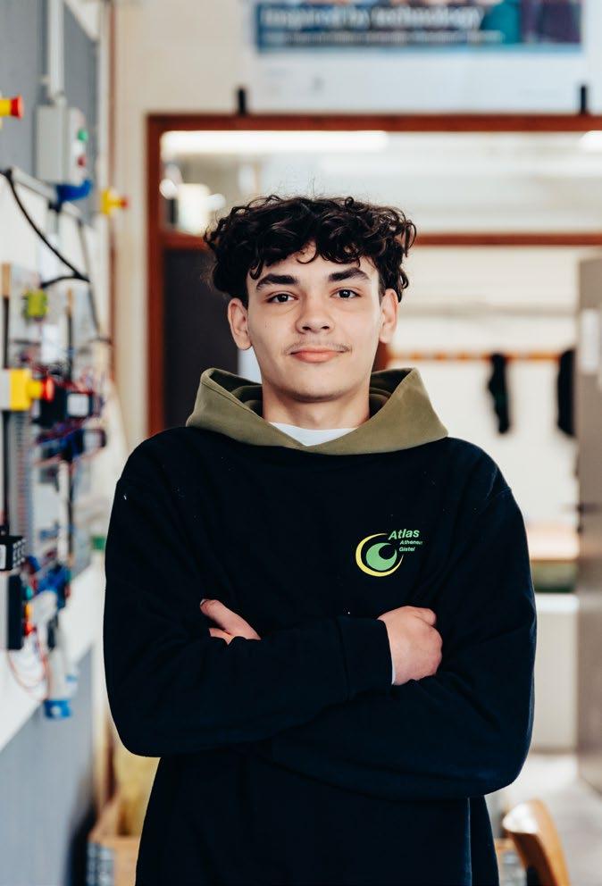 “In het eerste jaar deed ik ASO STEM en kwam ik in contact met elektriciteit. Als eindopdracht van het 2de jaar liet ik een autootje rijden op elektriciteit, en toen wist ik dat ik dat meer wilde doen. Sinds het 3de jaar volg ik elektrotechniek.
