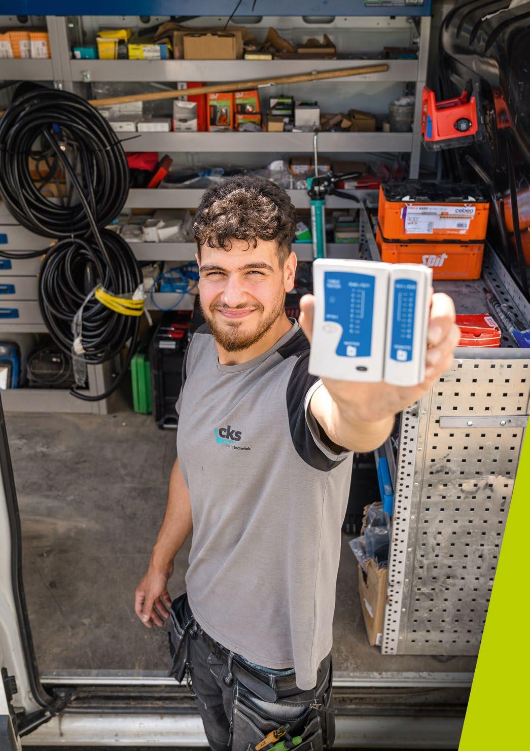 “Wat ik het meest waardeer in mijn werk, is de vrijheid die ik krijg. Hoewel ik een ploegbaas heb, werk ik vaak zelfstandig. Mijn collega Hasan heeft me veel bijgebracht, vooral over HVAC en het installeren van elektrische componenten. Voor mij is leren één van de belangrijkste en leukste aspecten van mijn job. Ik ben nu al een jaar zelfstandig onderweg met een camionette, en dat vind ik fantastisch! In de toekomst wil ik ook graag laadpalen installeren. CKS gaat bij alle vestigingen van Aldi een laadpaal plaatsen. Daar zou ik graag aan meewerken.”