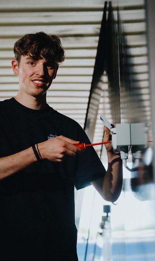 F“Tijdens mijn stage bij een zelfstandige elektrotechnicus kreeg ik de kans om aan de afwerking en domotica van huizen, appartementen en vakantiewoningen te werken. Daaruit leerde ik vooral: hoe groter het huis, hoe meer domotica. Je staat op stage plots voor een opdracht om problemen op te lossen. Met en voor mensen werken is nog een uitdaging erbovenop!”