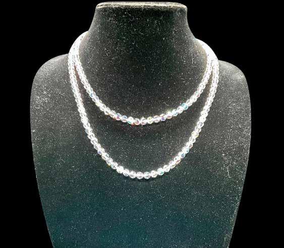 Colorful hand-beaded tribal necklace measuring 101”L.