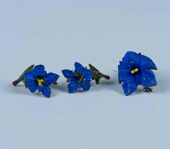 2PC 1940’S BLUE FLOWER SCREW-BACK EARRINGS AND BROOCH