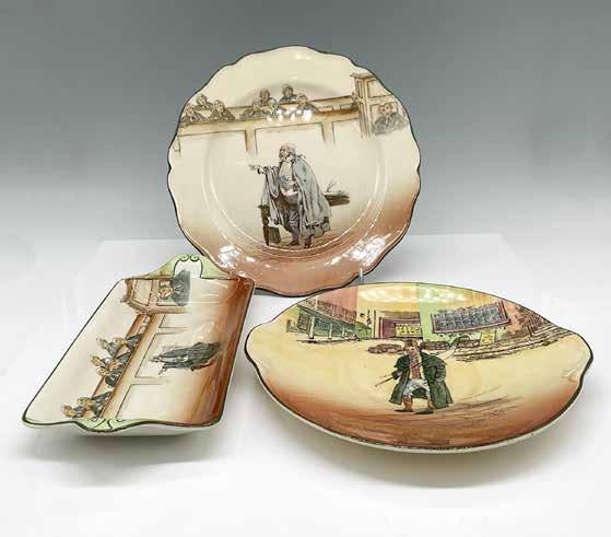 Lot includes The Fat Boy round platter and compote bowl, Dickens Ware with multiple characters and creamer with Sam Weller. Royal Doulton Dickens Ware backstamp.