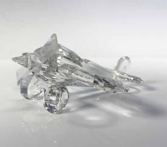 Part of the When We Were Young theme group, crystal figure has faceted nose, sharp edge propeller and detailed wings and wheels. Swarovski backstamp. 7473 000 002. This item has its original box. 4.75”H x 4” dia.