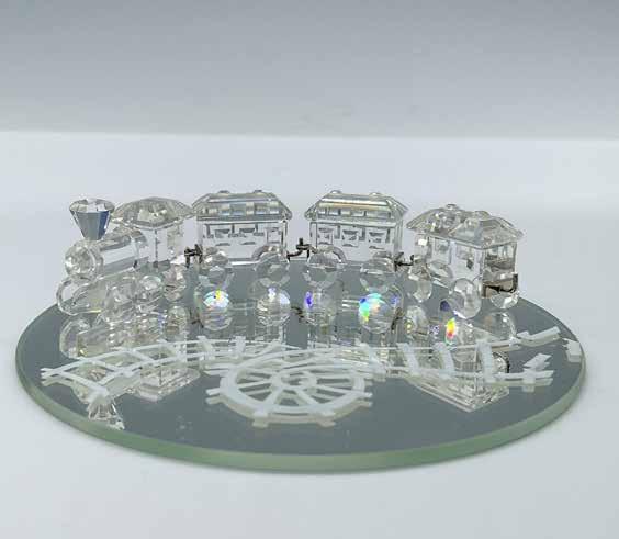 SWAROVSKI CRYSTAL FIGURINE, MINI TRAIN WITH MIRROR BASE SET