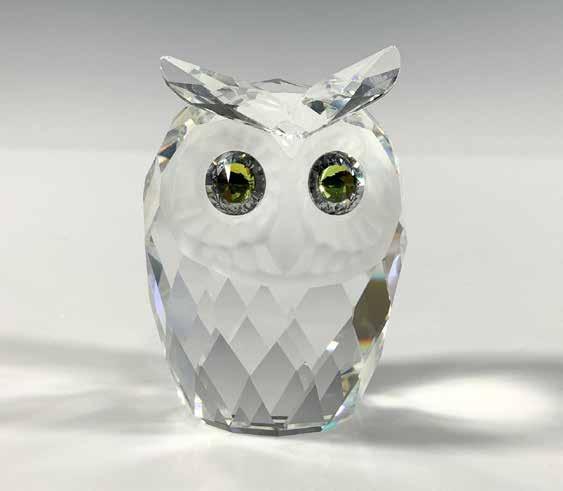 Features magnificent and finely crafted piece with crystal facets and pearl accents. Includes stand which is silver and measures 2”L. Includes the certificate and the original box which measures 6.25”H x 3.25”dia.