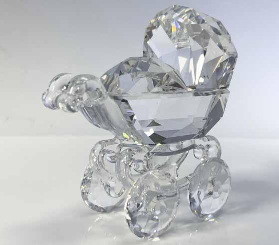 SWAROVSKI SILVER CRYSTAL FIGURINE, BABY CARRIAGE