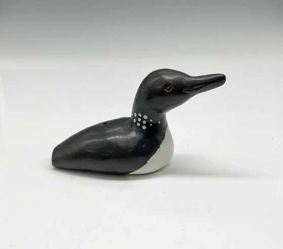 Hand made and hand decorated ruddy duck. Excellent carved feather details. Black acrylic eyes. RUDDY 7413 craved on the underside. Artist signed, titled and dated in black ink.