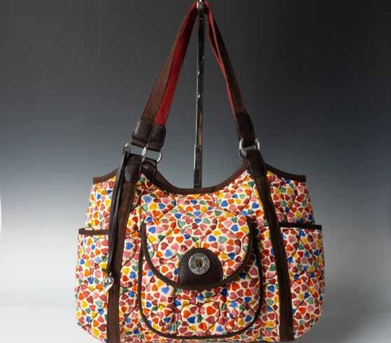 BRIGHTON LARGE FABRIC HANDBAG, COLORFUL HEARTS