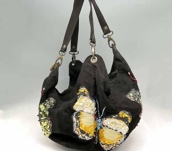 2PC BRIGHTON LEATHER SMALL HANDBAGS WITH BUTTERFLY MOTIF