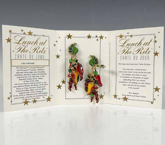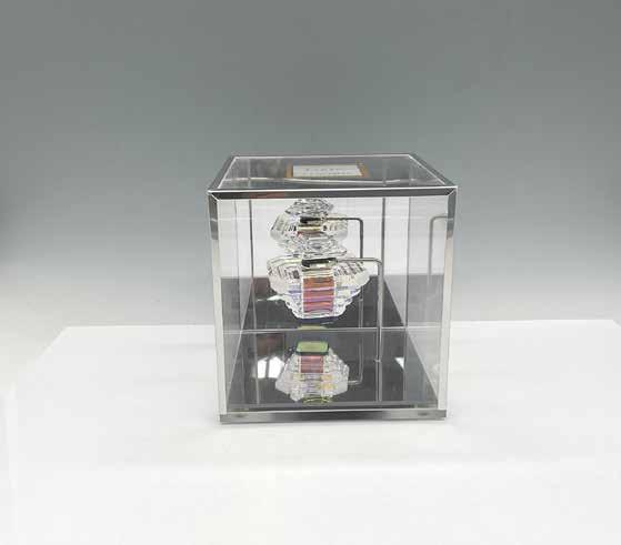 Gold plated miniature cruet set with crystal shakers. Swarovski impressed mark. This item has its original box: 2”L x 3.5”W x 1.25”H.