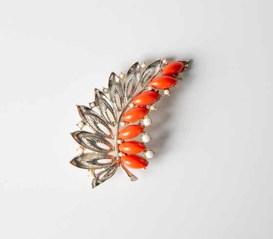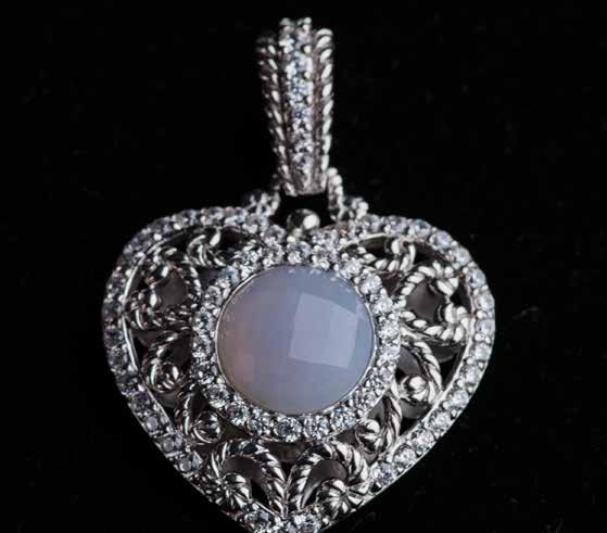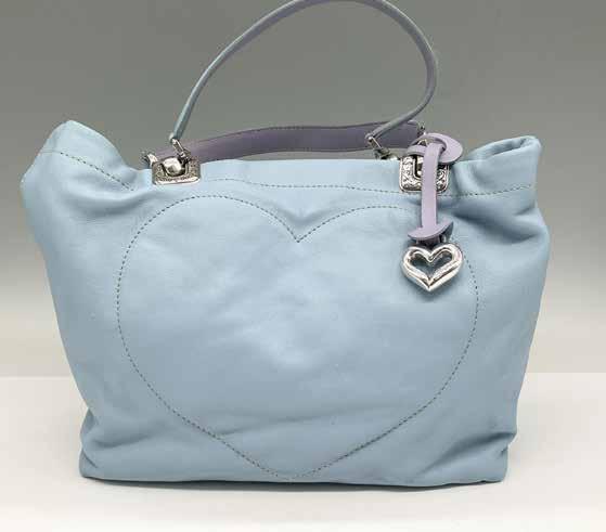Soft leather with stitched heart design, accents of turquoise, magnetic closure and top handles with silver-toned hardware. Canvas floral interior with zippered compartment. Brighton embossed tag C431440.