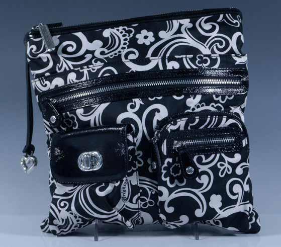 BRIGHTON BLACK AND WHITE FLORAL NYLON HANDBAG