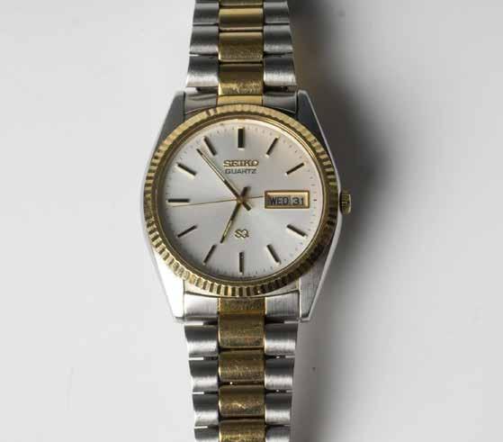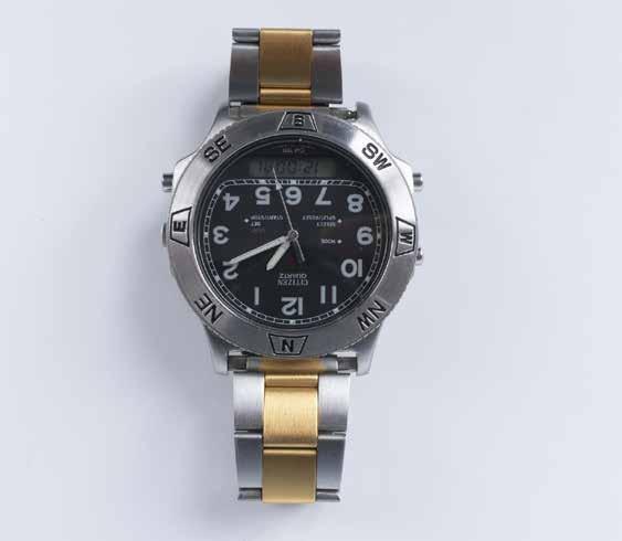 This watch has a stainless steel case and bracelet with a uni-directional rotating bezel. It has Japan movement and electro luminassence quartz. Water resistant 3atm.