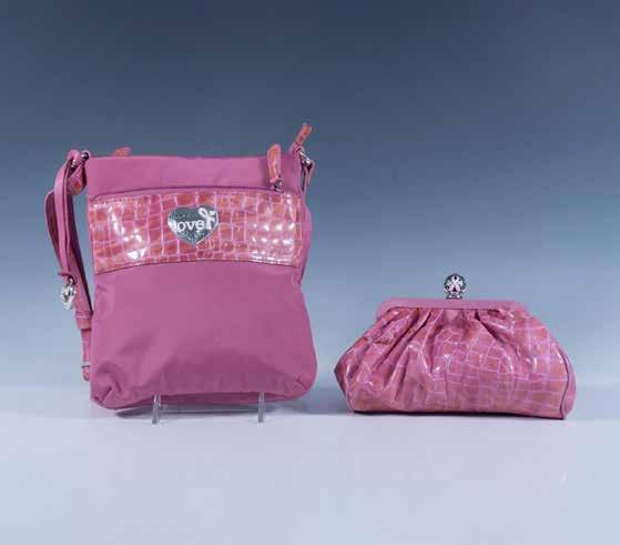 2PC BRIGHTON PINK NYLON AND LEATHER HANDBAG AND POUCH