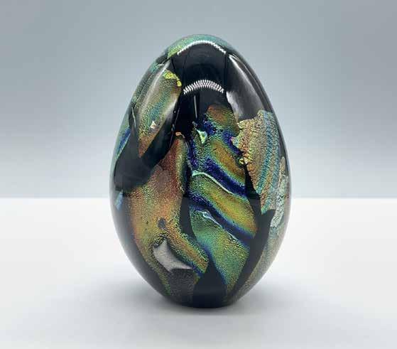 MURANO STYLE GLASS SPECKLED SCULPTURE, SIGNED