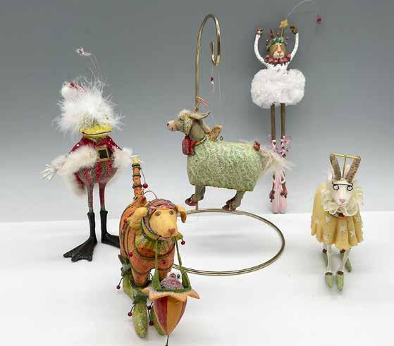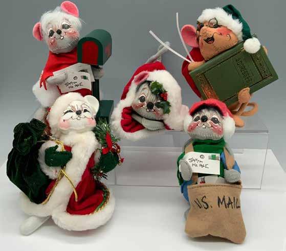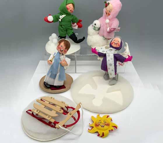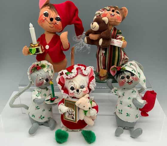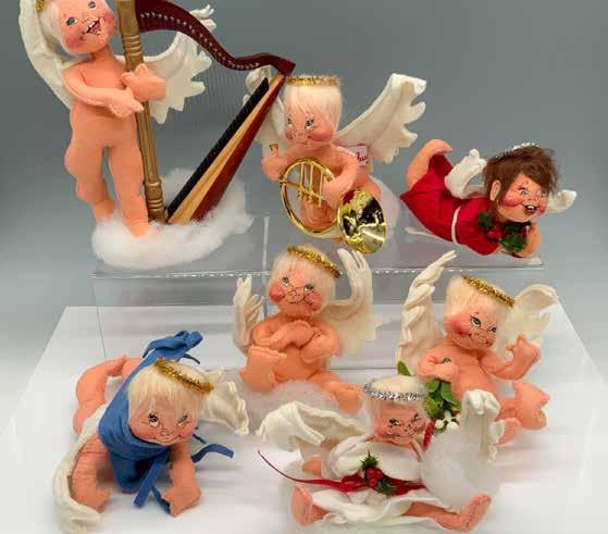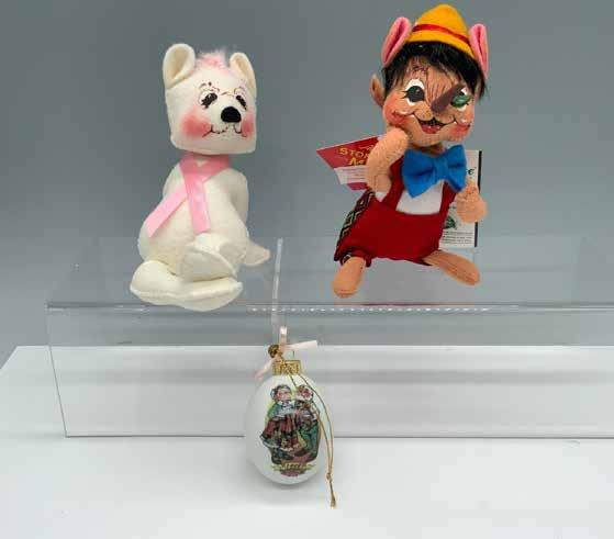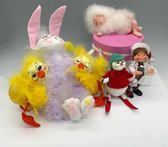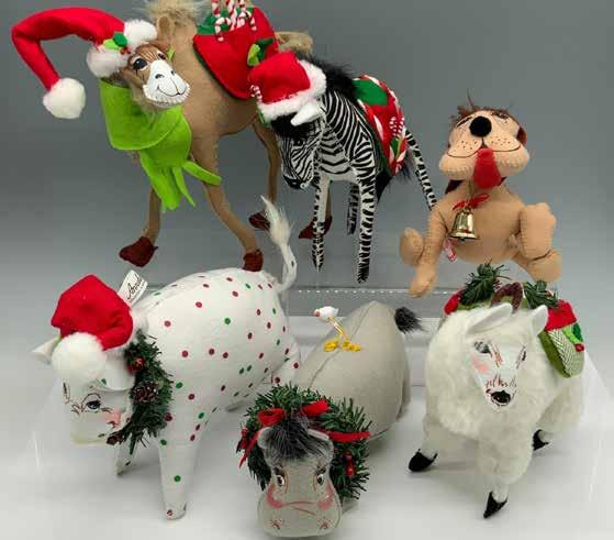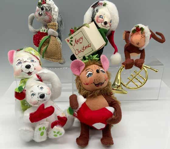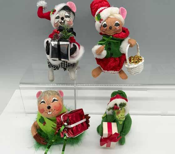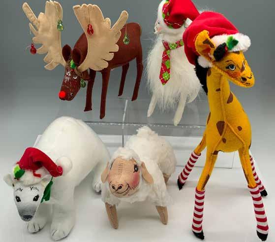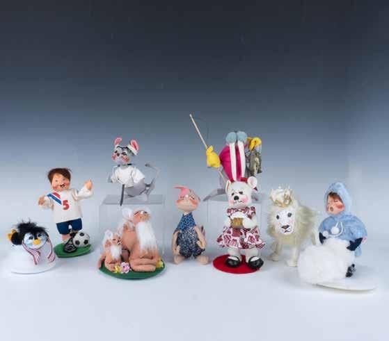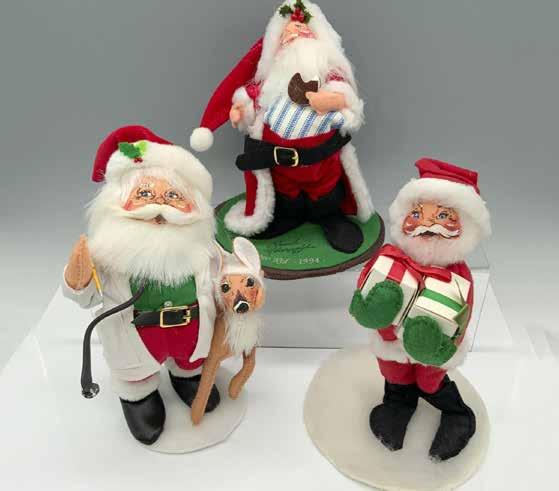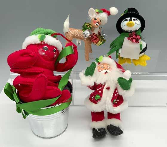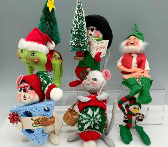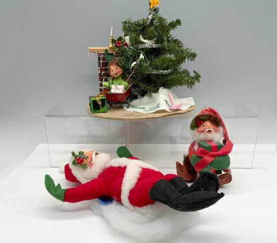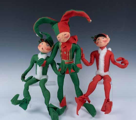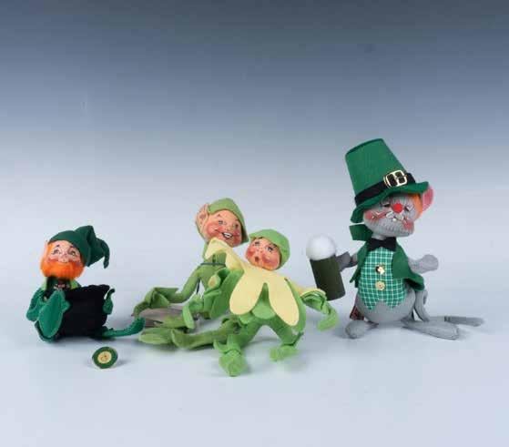 Features 2 Saint Patrick’s Day leprechaun dolls, 2 Christmas elf dolls and one Annalee Doll Society pin. Tags read, Annalee. Largest measures, 8”L x 2”W x 10”H.