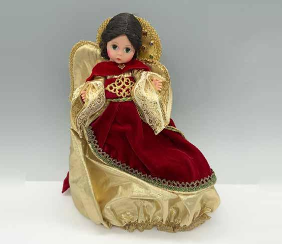This piece features a vinyl, handpainted face and head, dressed in a beautifully recreated costume from the movie. This item has its original box which measures 6.5”L x 12.25”W x 3.5”H. Danbury Mint backstamp. 6”L x 3.25”W x 14”H.