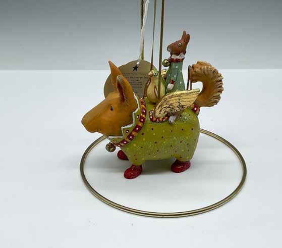 This hand painted figurine is called Dash Away Delivery. Department 56 backstamp. It comes with its original box, which measures 5.25”L x 8.5”W x 3.75”H.