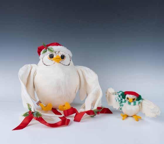 Handmade, hand decorated dressed in blue and white sailor suits carrying pinwheels ready for Fourth of July holiday. Accompanying them is our pelican with a patch on his eye (10”H).