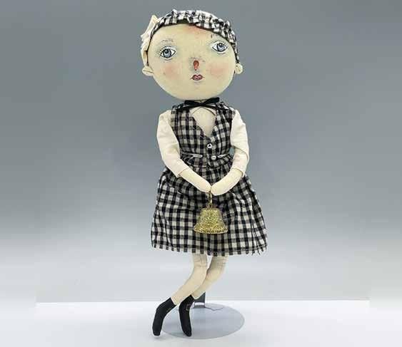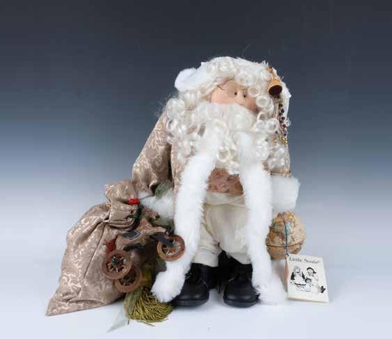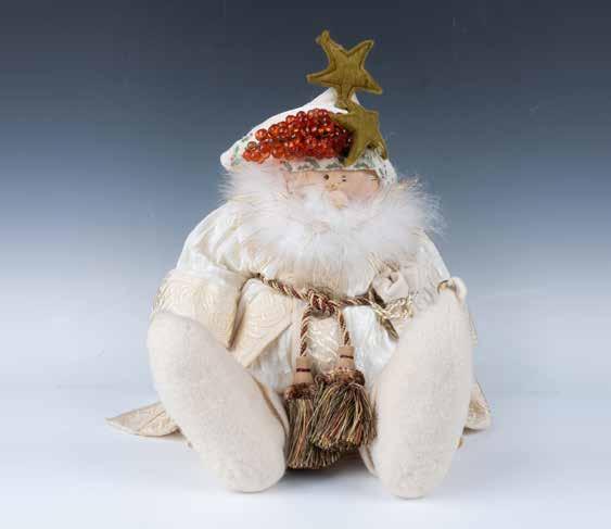 Whimsical Christmas decorative doll made out of stuffed cloth with a hand painted face. Gathered Traditions tag.