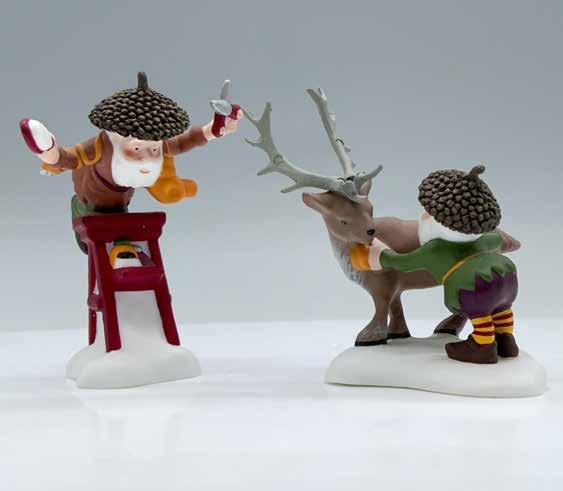 2PC DEPARTMENT 56 NORTH POLE SERIES ELF & REINDEER FIGURINES