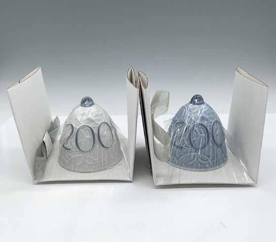 The set called Open Wide! measures approximately 2”L x 1.25”W x 1.75”H, and comes in a box that is 3.5”L x 2”W x 2.75”H. The set called Party In The Hot Tub! comes in a box that measures 5”L x 2.75”W x 3.75”H. Department 56 backstamp.