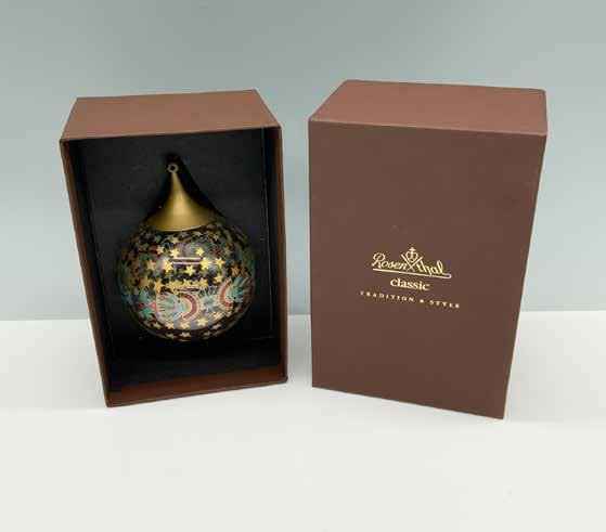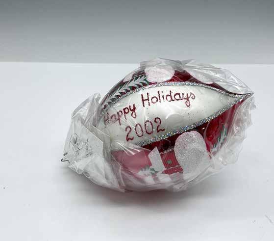 This hand painted porcelain figurine is Santa’s Rooming House and comes with light kit. This item has its original box that measures 8.25”L x 7.5”W x 10.5”H. Department 56 backstamp.