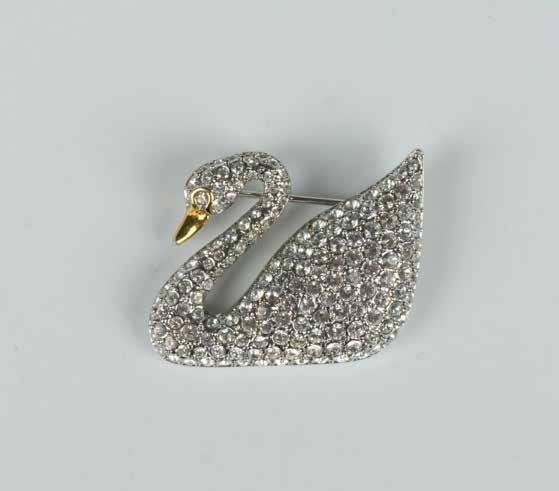Largest piece Dimensions: 1.25’’L x 1’’W, Each. Marked Nina Ricci, Joseph Mazer Adolfo for Mazer, Swarovski Swan, Ciner, Carolee.