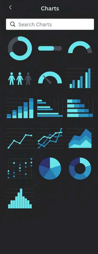 Located in the elements tab -- use charts and graphs to represent your data. Choose from progress rings and bars, pictograms, pie charts, line charts, scatterplots & more. Bring in your own data from CSV or google sheets.