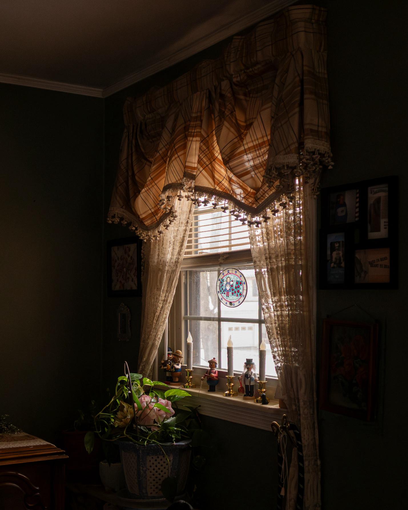 Sunlight pouring onto frames with memories that remember for us.