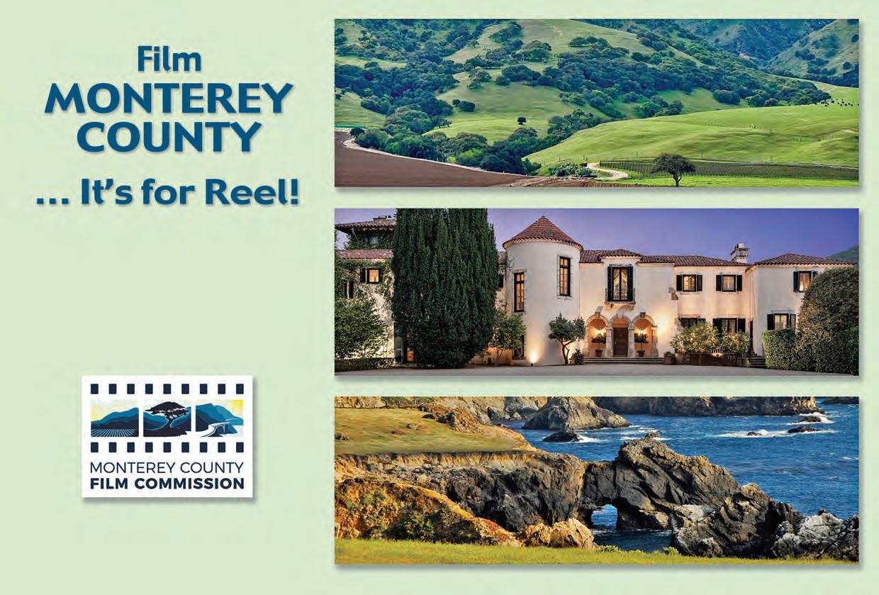 Nordstrand says she gets a lot of requests for ultra-modern and mid-century architecture, both of which can be found across the county. “We have some great location scouts who know about the availability of individual homes for flming. It’s worth saying that we are very afordable in Monterey, which means you can fnd scene-stealing locations that look like a million bucks on screen — without having to pay a million bucks.”