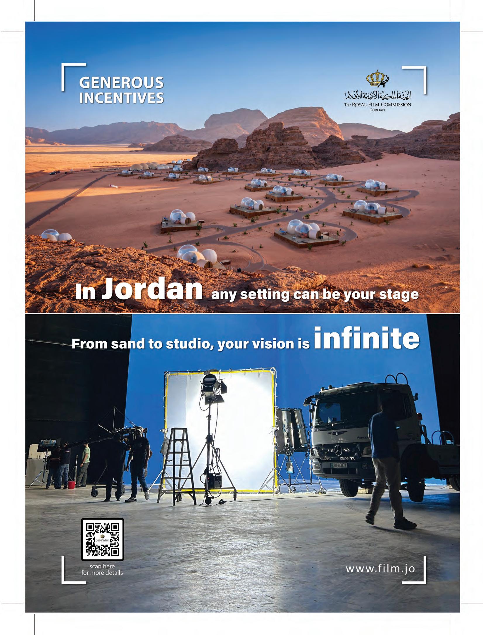 Jordan has long been a destination for the global flm and TV industry, but since the Gaza War, insurance premiums have tripled, meaning that most recent shoots have been local and regional. “Jordan has always been a flming destination for the whole world, particularly from Hollywood and Bollywood,” says Jordan’s Royal Film Commission (RFC) CEO, Mohannad Bakri. “We are lucky that the regional TV industry has grown so much, and that we have huge opportunities thanks to that. In particular, the Saudi streaming platform Shahid has become the Netfix of the MENA region, and Saudi Arabia is very active in terms of production across the Middle East.”