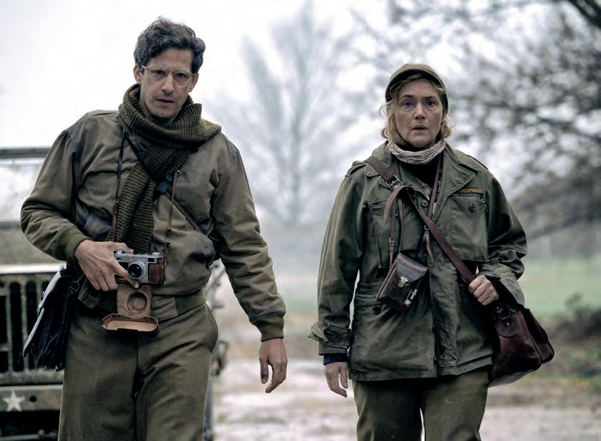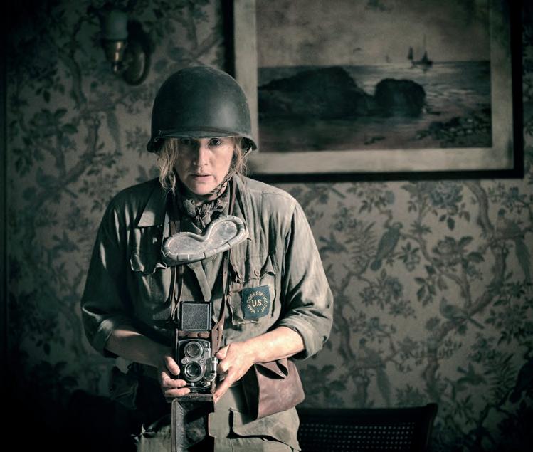 Working together to develop a concept for the flm, Winslet and Tony Penrose soon agreed that the period of Miller’s life that best summed her up was when she worked as a war correspondent for British Vogue. “That period is the 10 years which take her from the pre-war sunlit days of the south of France — where she spent time with her artistic friends — through to the heart of darkness of Dachau,” says actor Josh O’Connor who plays Tony, the young journalist who interviews Miller, taking her back to her time on the front line. It was decided early on that the flm’s director would be a woman. Winslet had worked with Ellen Kuras when she was a cinematographer on Eternal Sunshine of the Spotless Mind (2004) and A Little Chaos (2014) and was keen to ofer her the opportunity to direct her frst feature. “We wanted to be with her, hear her breathe, see what she was seeing, go through these events with her and understand vicariously and viscerally what she was going through so we could better understand her as a person,” Kuras says. “Being able to see Lee’s photos as well as her contact sheets gave us an insight into what she saw and what she was thinking when she took those photos. They were a map to what she was experiencing taking photographs and allowed us to see behind the scenes of some of her most iconic images.”