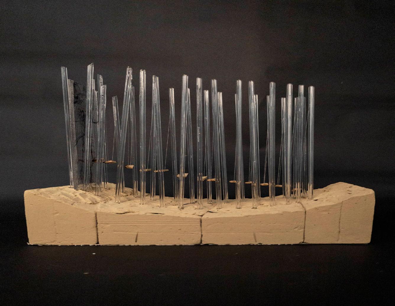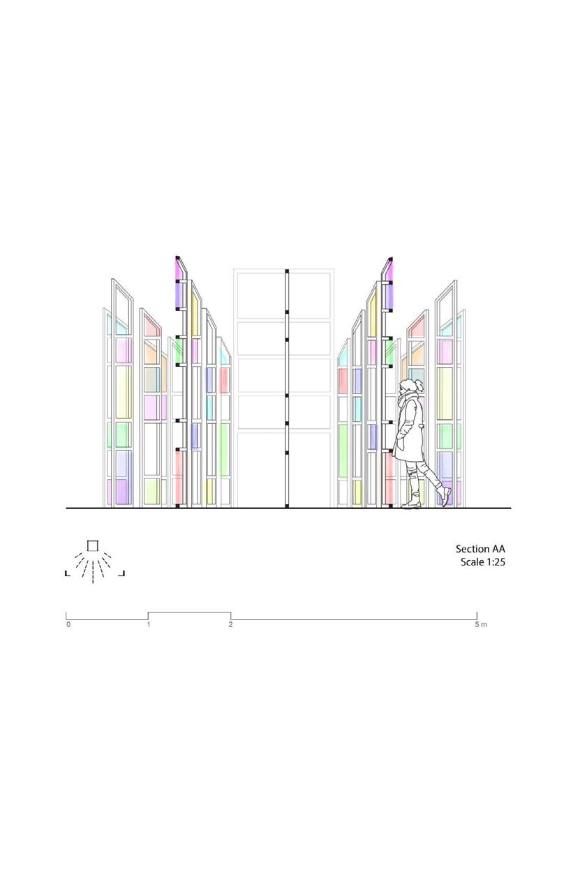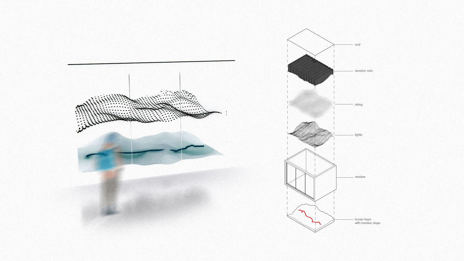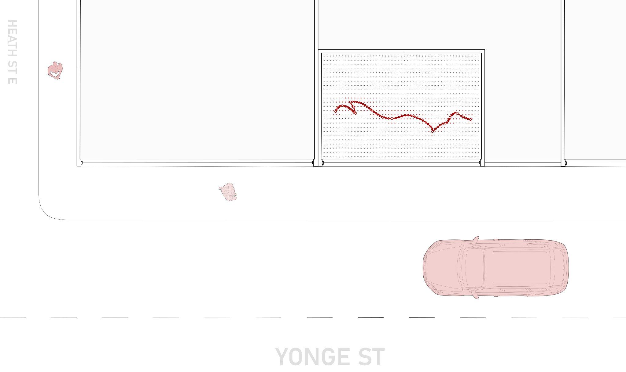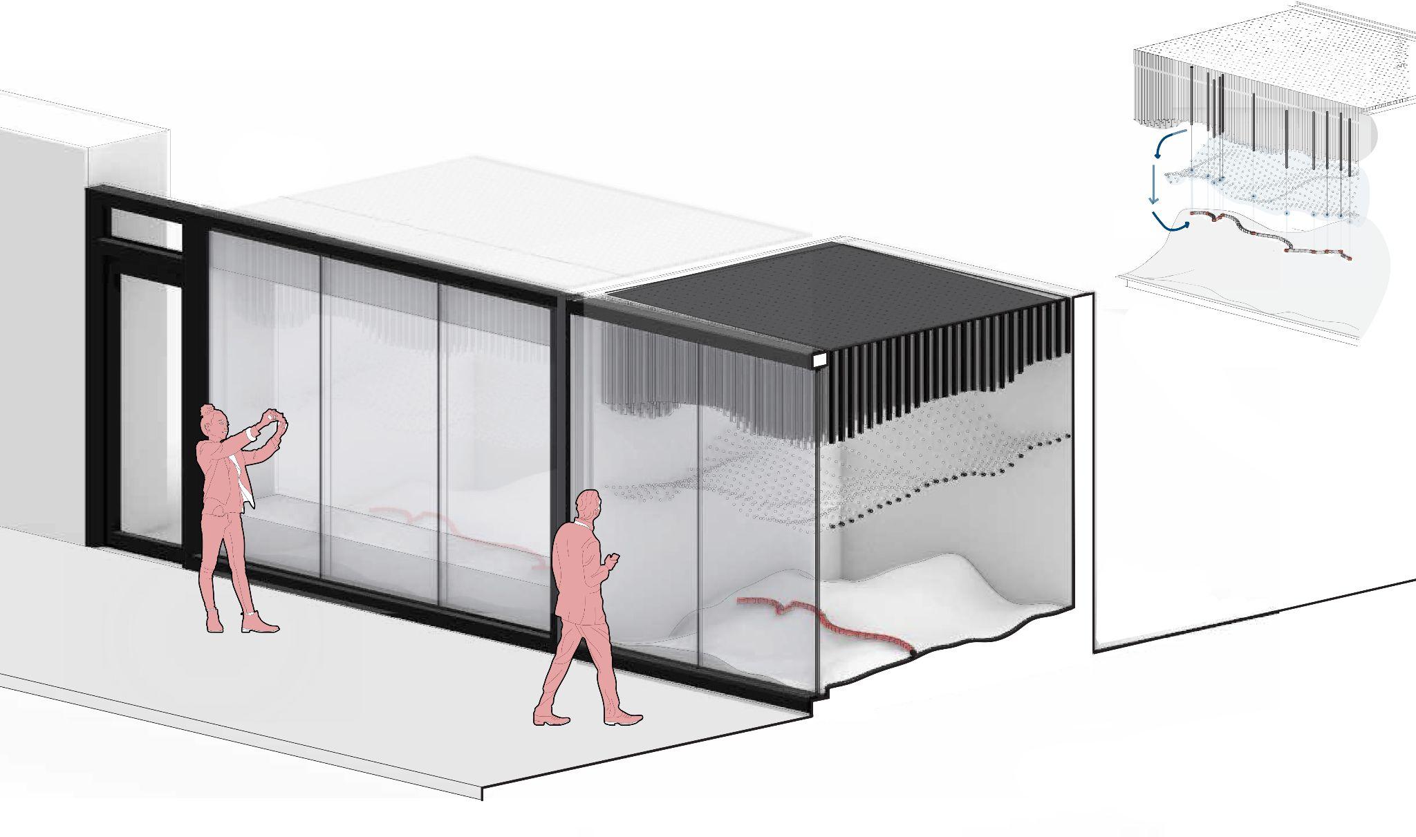 A temporary storefront installation that visualizes movement and environmental data through layered material systems, transforming the street interface into an interactive urban threshold.