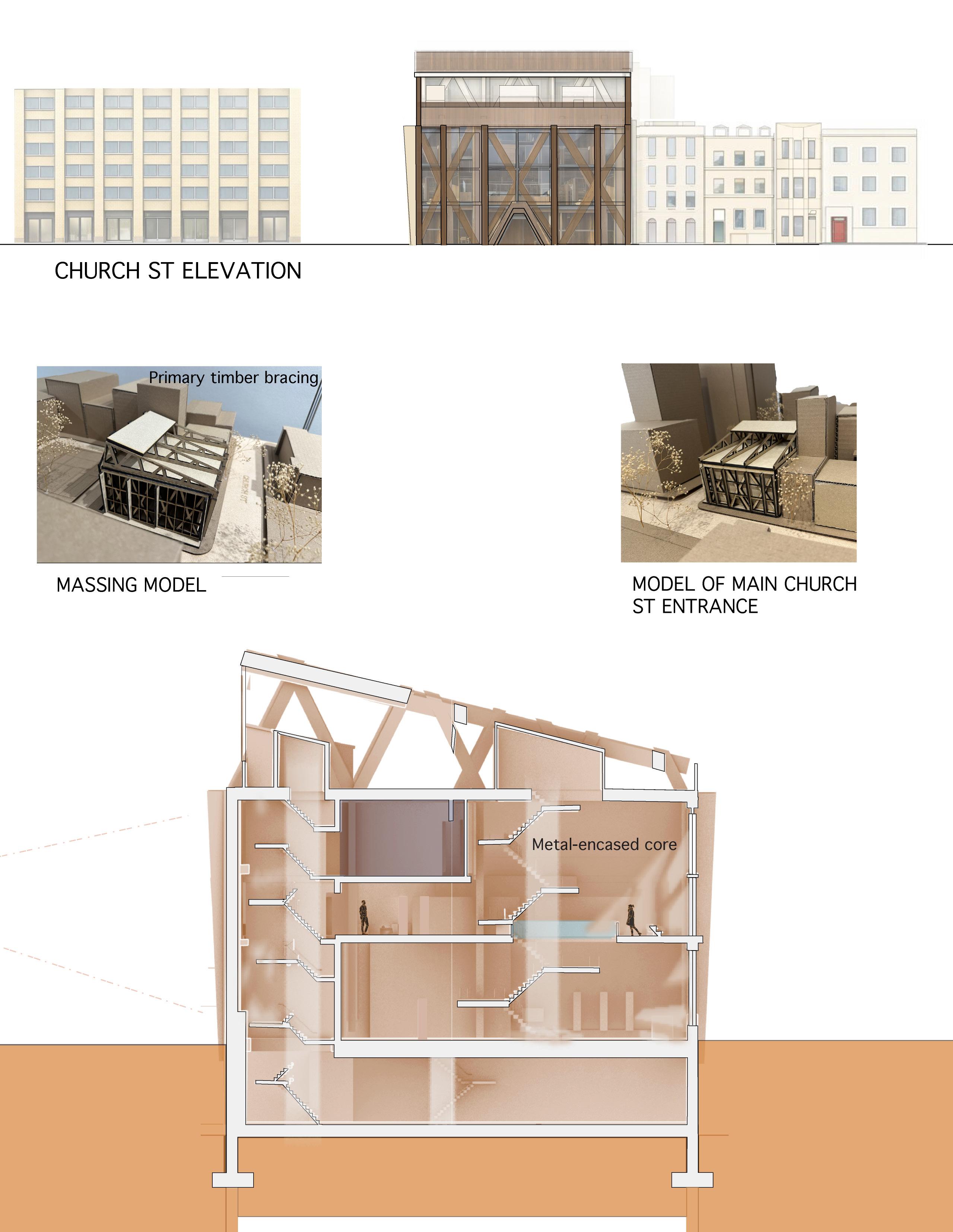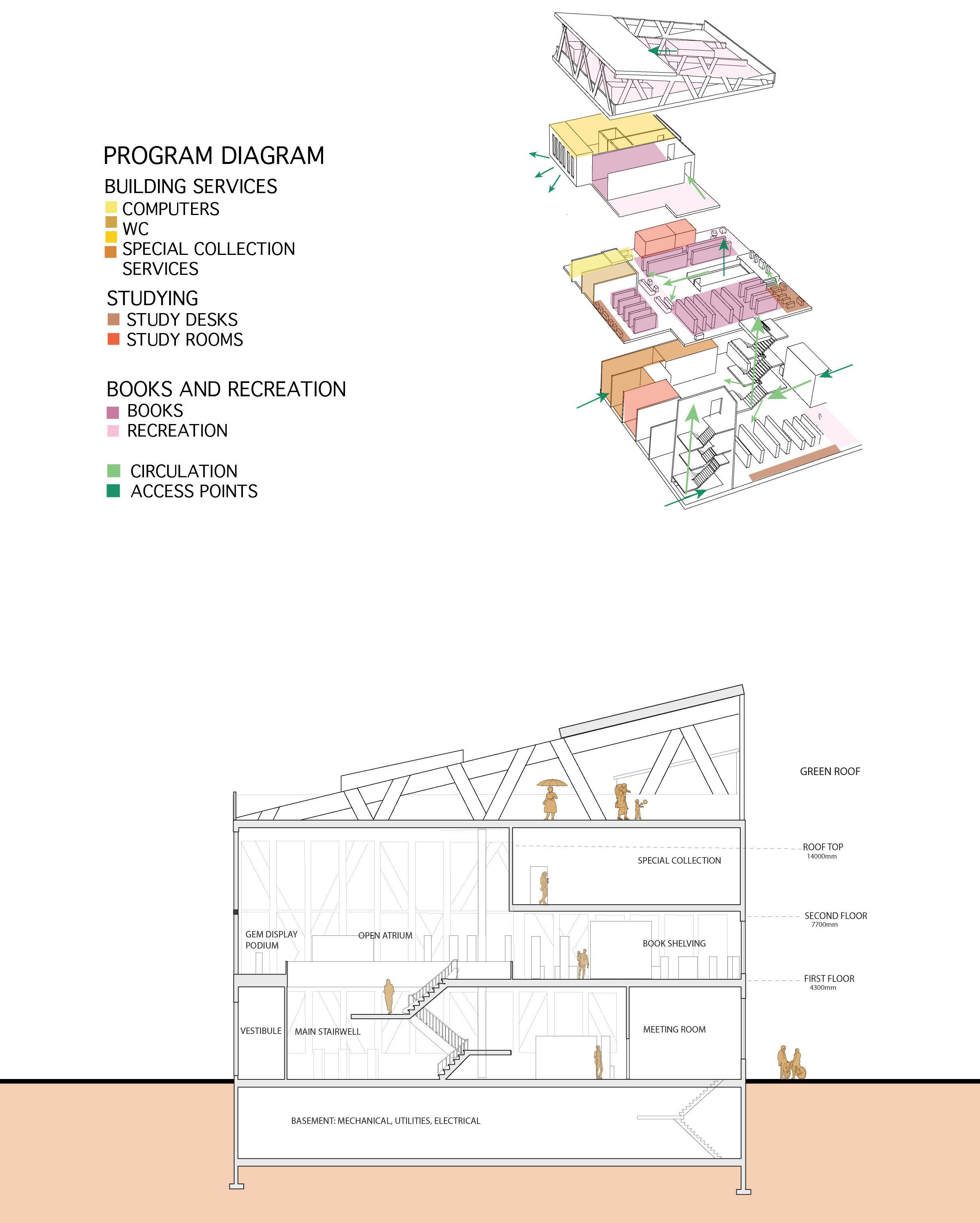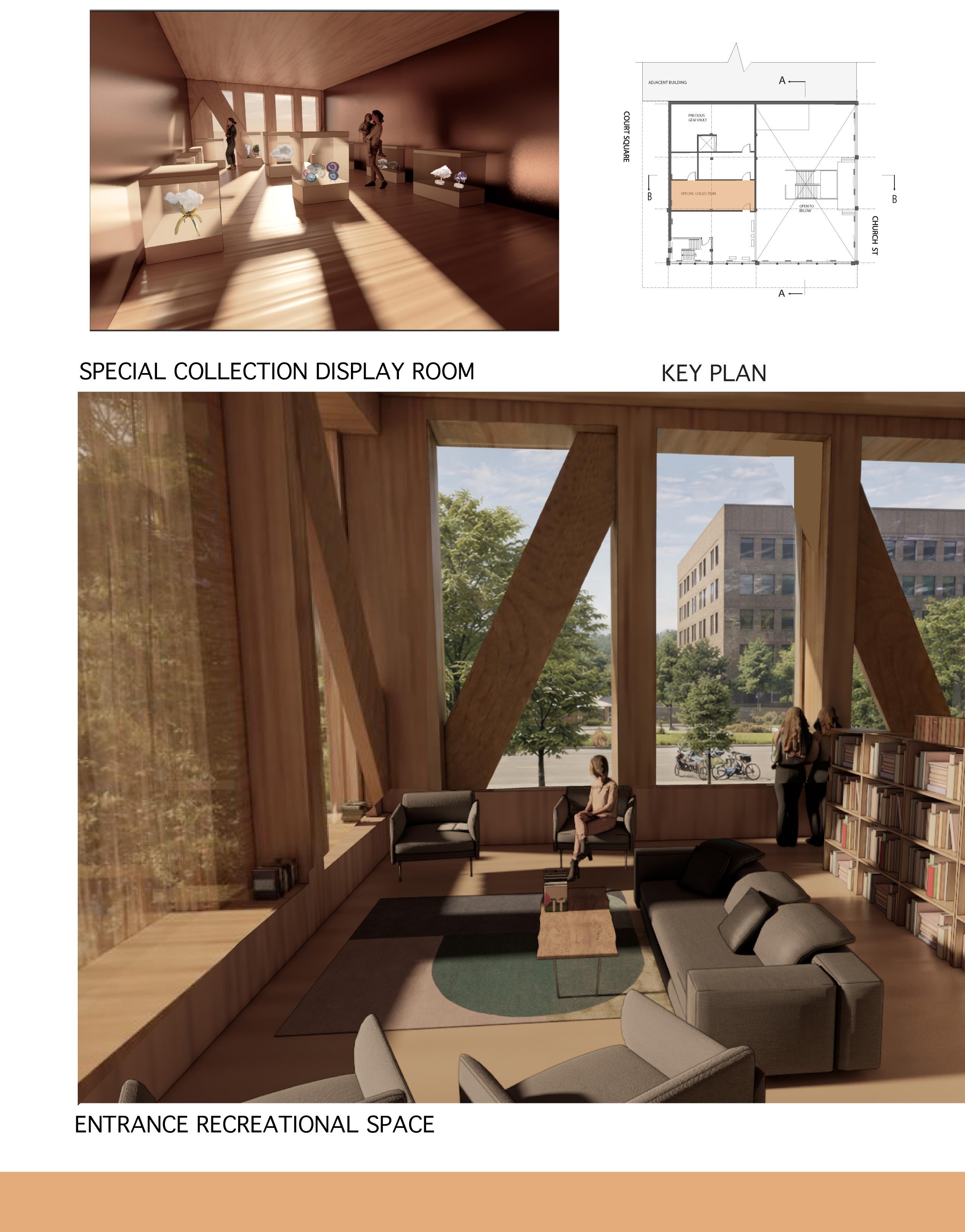 Set at Church Street and Adelaide, the project inverts the language of extraction, transforming underground geometries into a vertical, light-filled public space. Exposed mass-timber framing and cross-bracing translate the precision and rigor of mining infrastructure into an open architectural expression. By bringing this structure above ground, the library becomes a place of transparency, material clarity, and collective occupation. The act of excavation is reimagined as a spatial and civic experience.