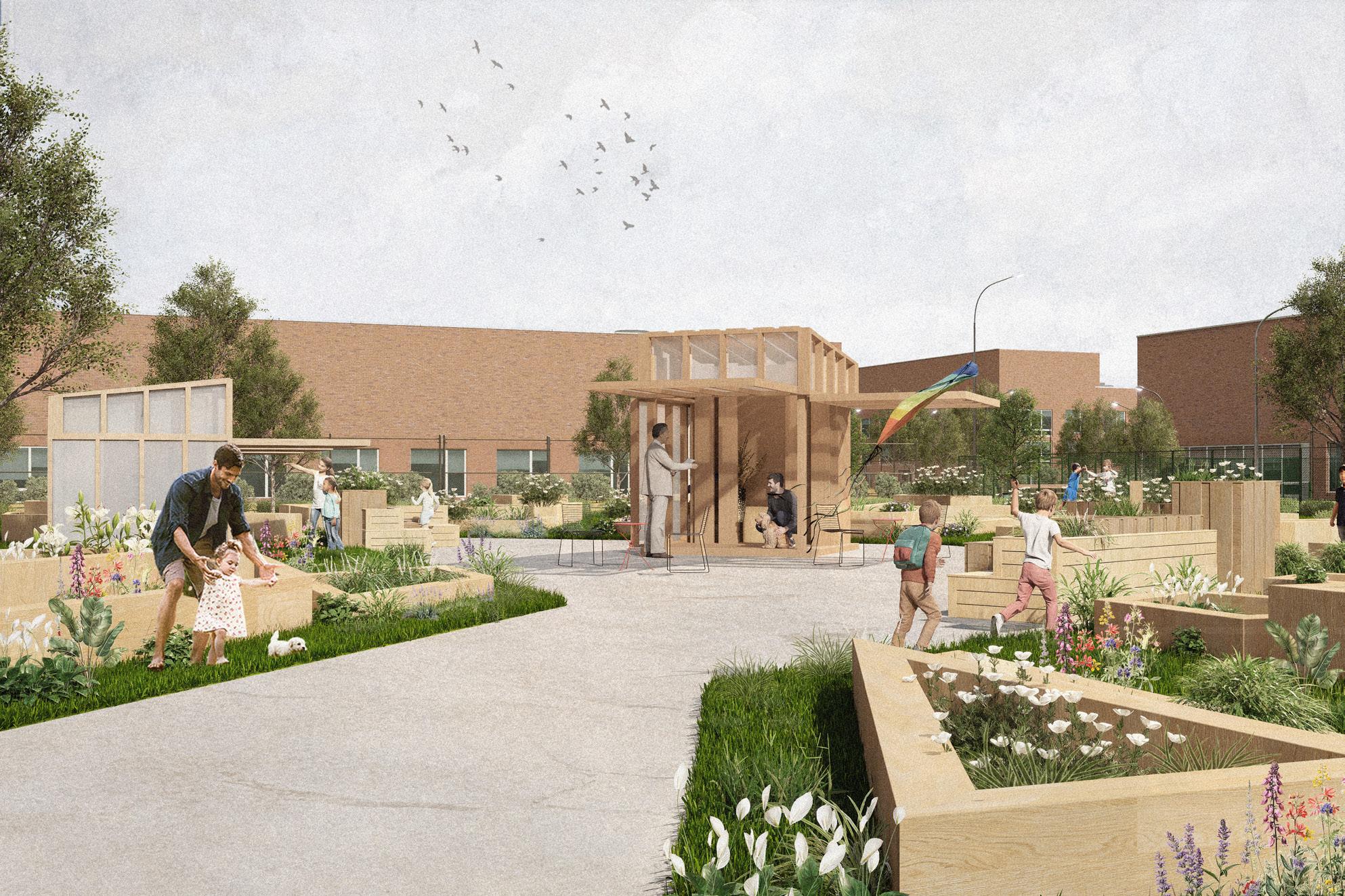 A community garden design-build proposal developed with Freedom By Design, testing modular pavilions and planting strategies to activate underused urban land.