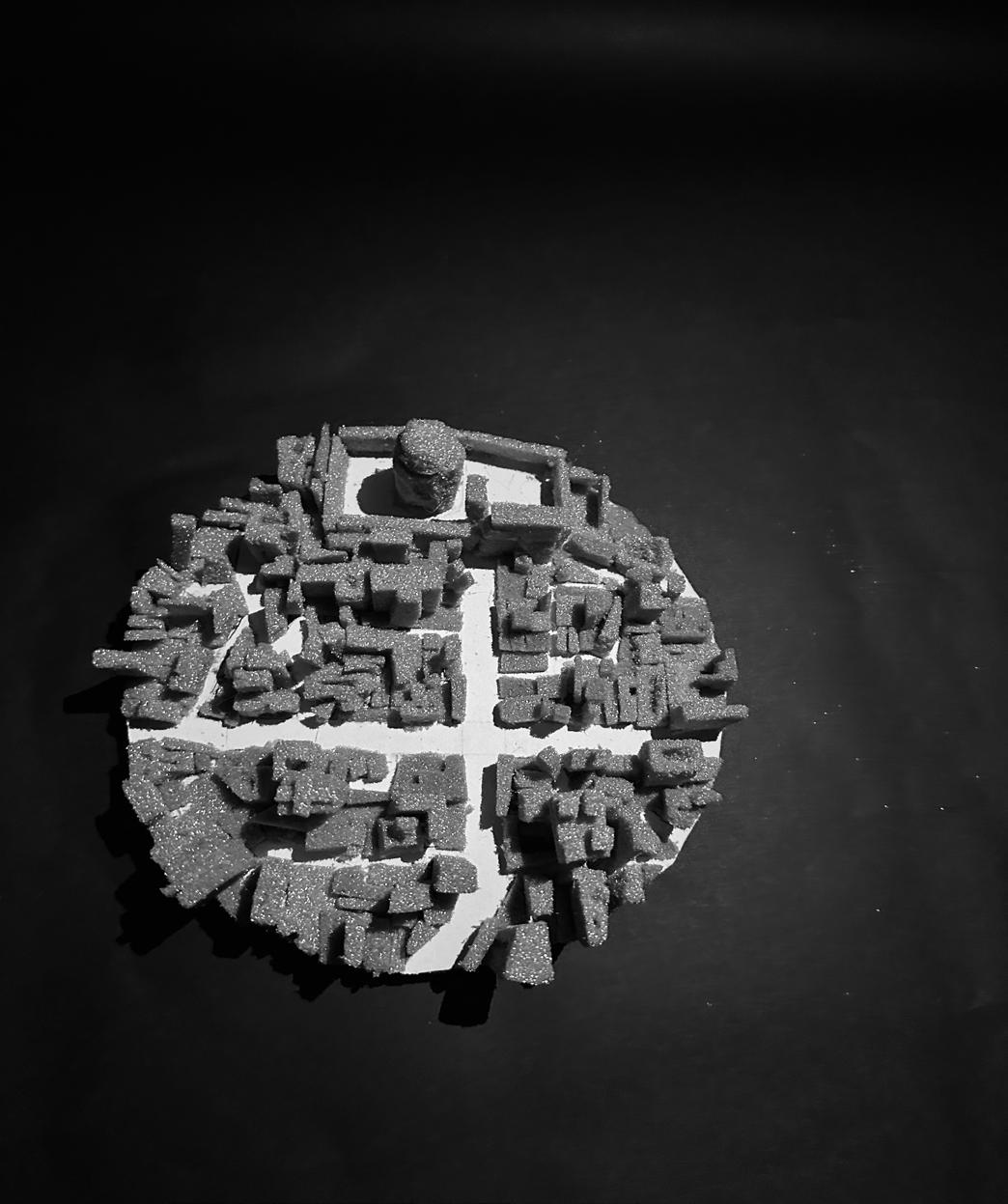 Patterns of urban growth and voids in a city fabric, emphasizing contrast between built mass and voids.