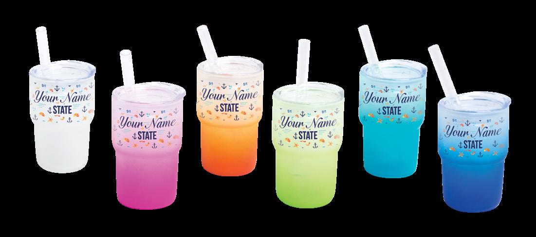 This state-of-the-art equipment not only allows us to print 360o wraps on cylindrical items; it can also print full color designs on SELECT drinkware and souvenirs!* full