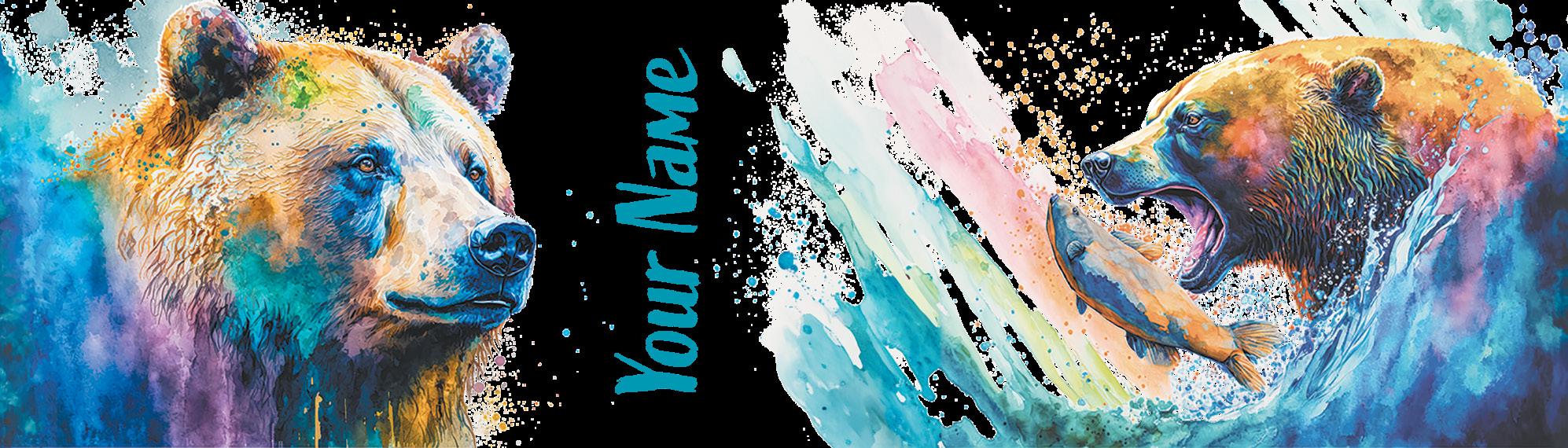 UMS01028 Watercolor Bear with Fish (Full Color Wrap)