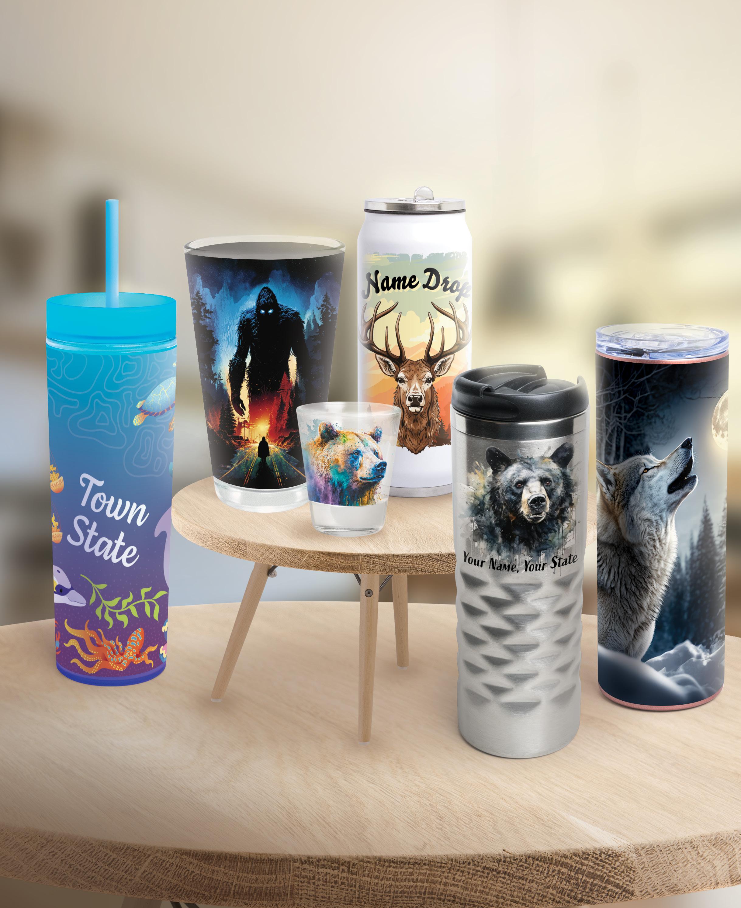 These items can be customized with 360o full color wrap prints! (Note: Handles are not printed.)
