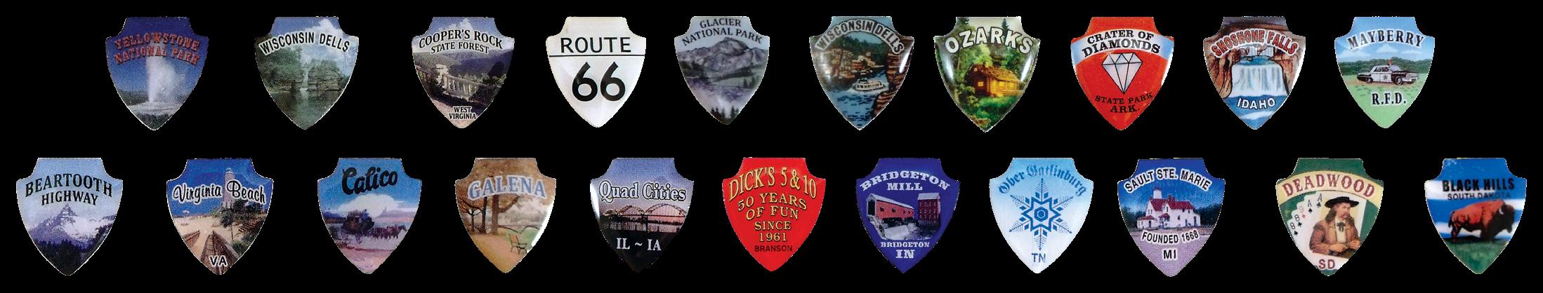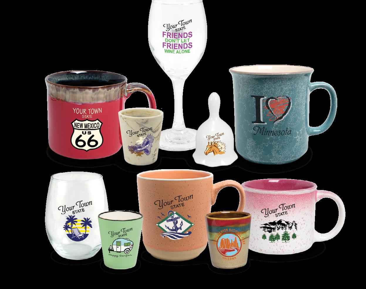 Mugs, shot glasses, spoons, magnets, keychains, thimbles, salt & pepper shakers, cups, wooden games, hat pins, water bottles and more.