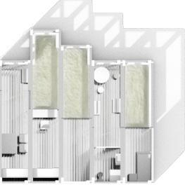 The prefab construction in b-core slab material defines the sizes of modules and building envelope.