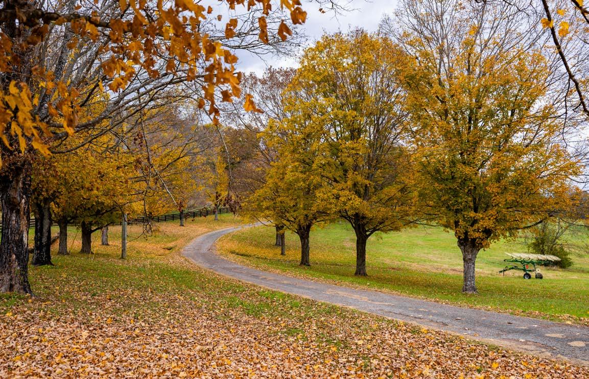 Embrace the vibrant hues of autumn on this stunning estate. As the leaves turn fiery shades of red, orange, and gold, the landscape transforms into a picturesque canvas of seasonal beauty. Explore the warmth and charm of fall on this expansive property.