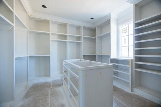 Boutique-style primary closet with built-ins and center island