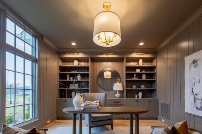 Main-level study with custom built-ins